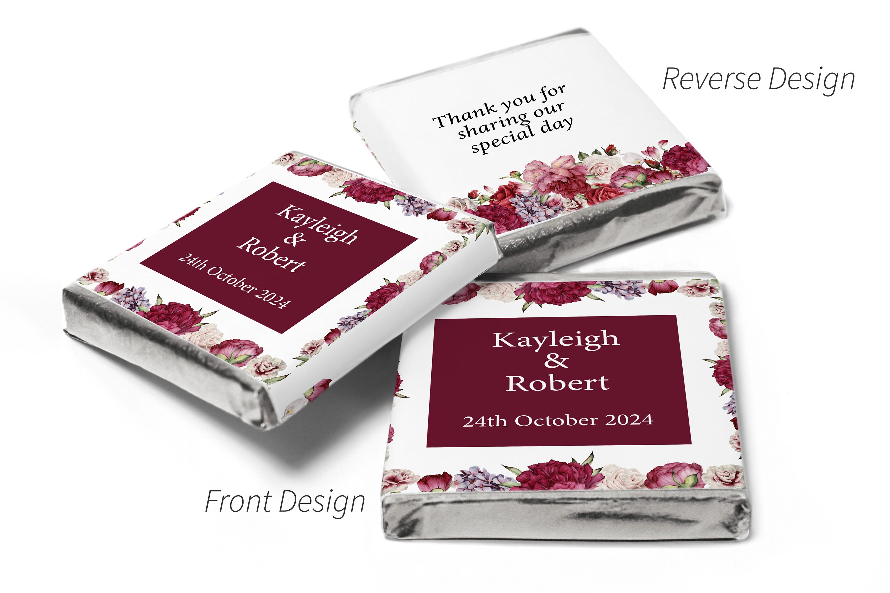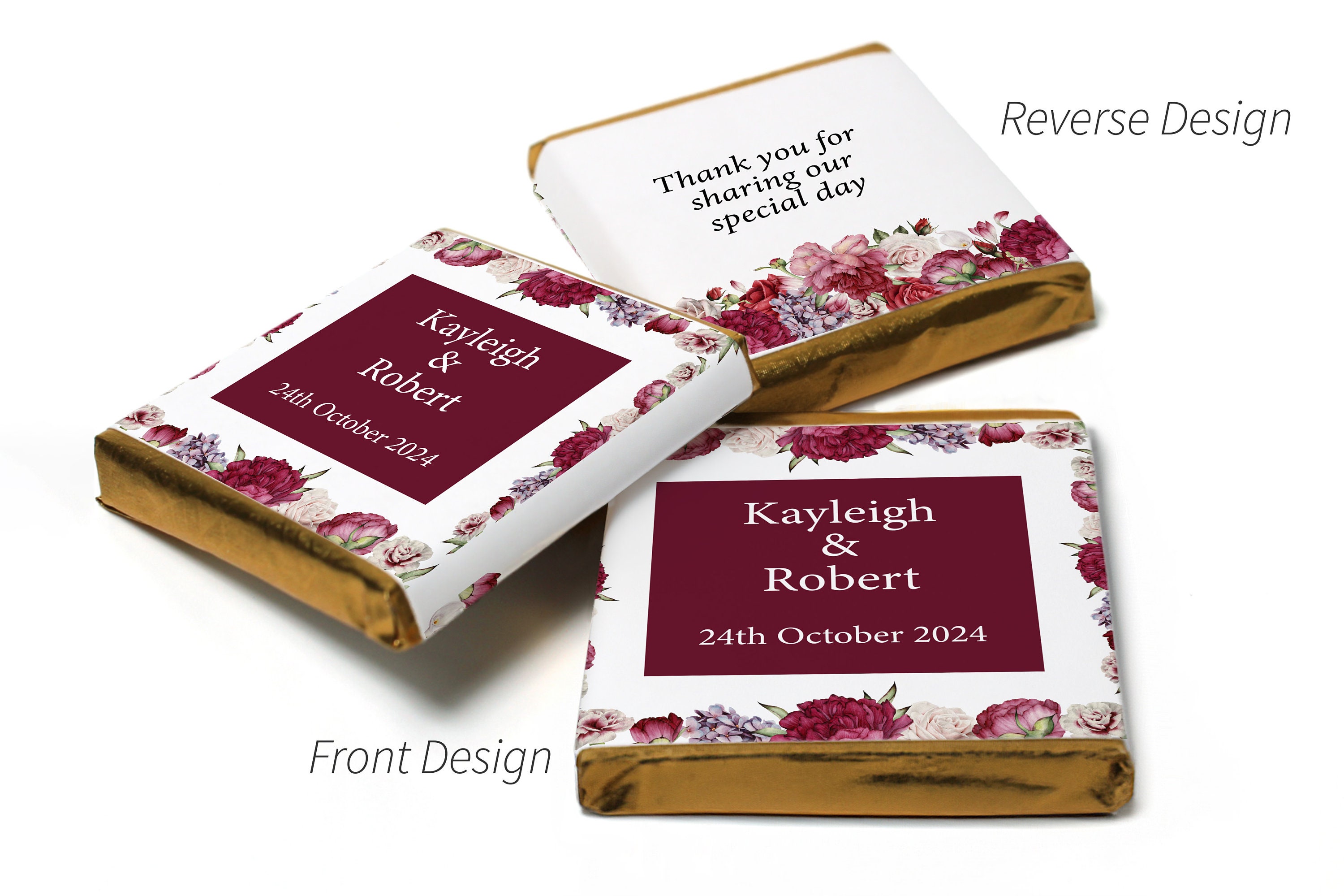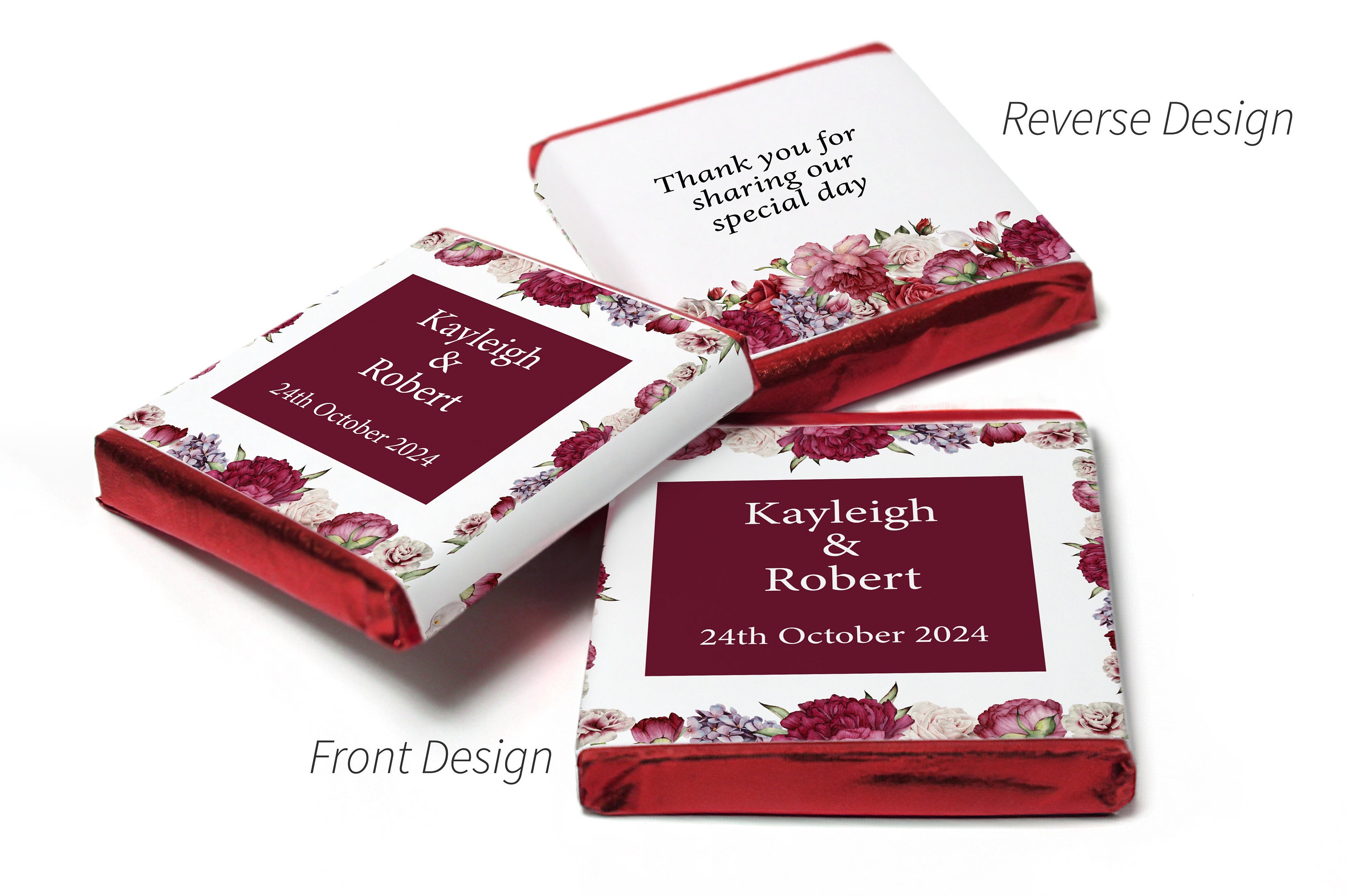 Wedding / Mehndi Chocolates - Personalised Wedding Favours - Neapolitan Chocolates- Burgundy Floral - V3