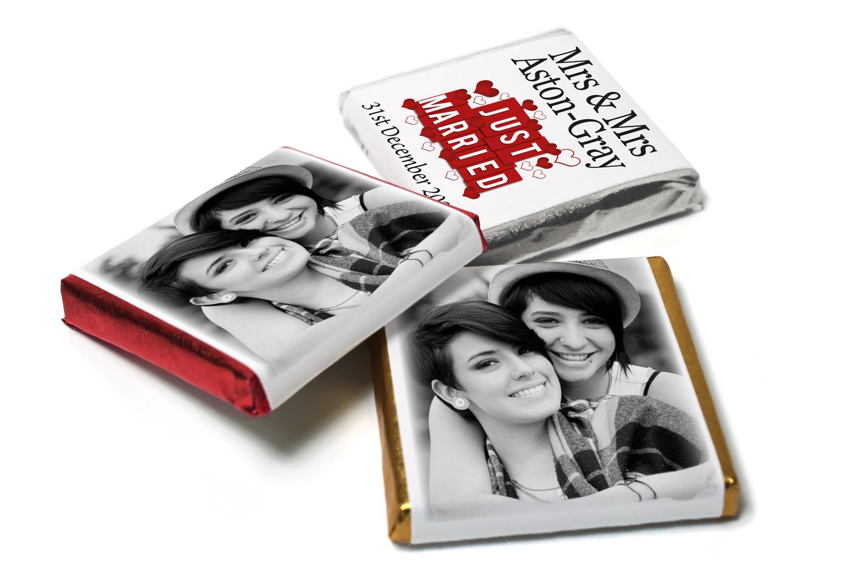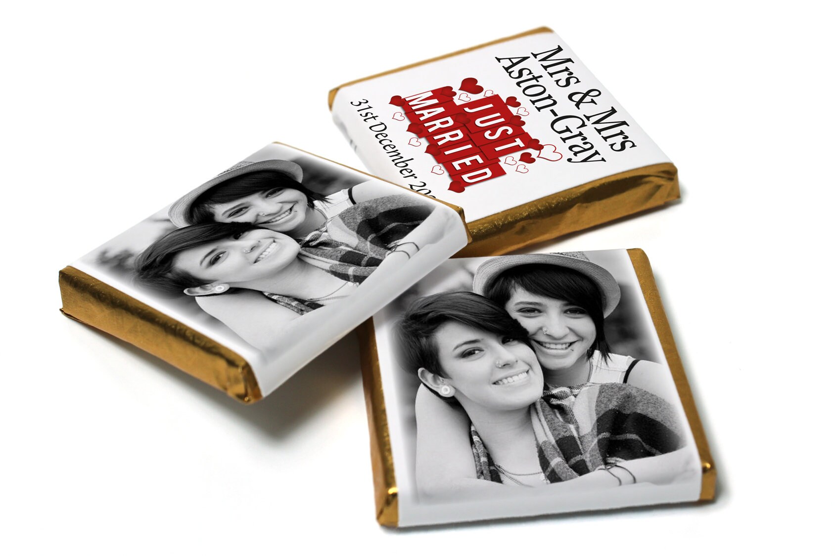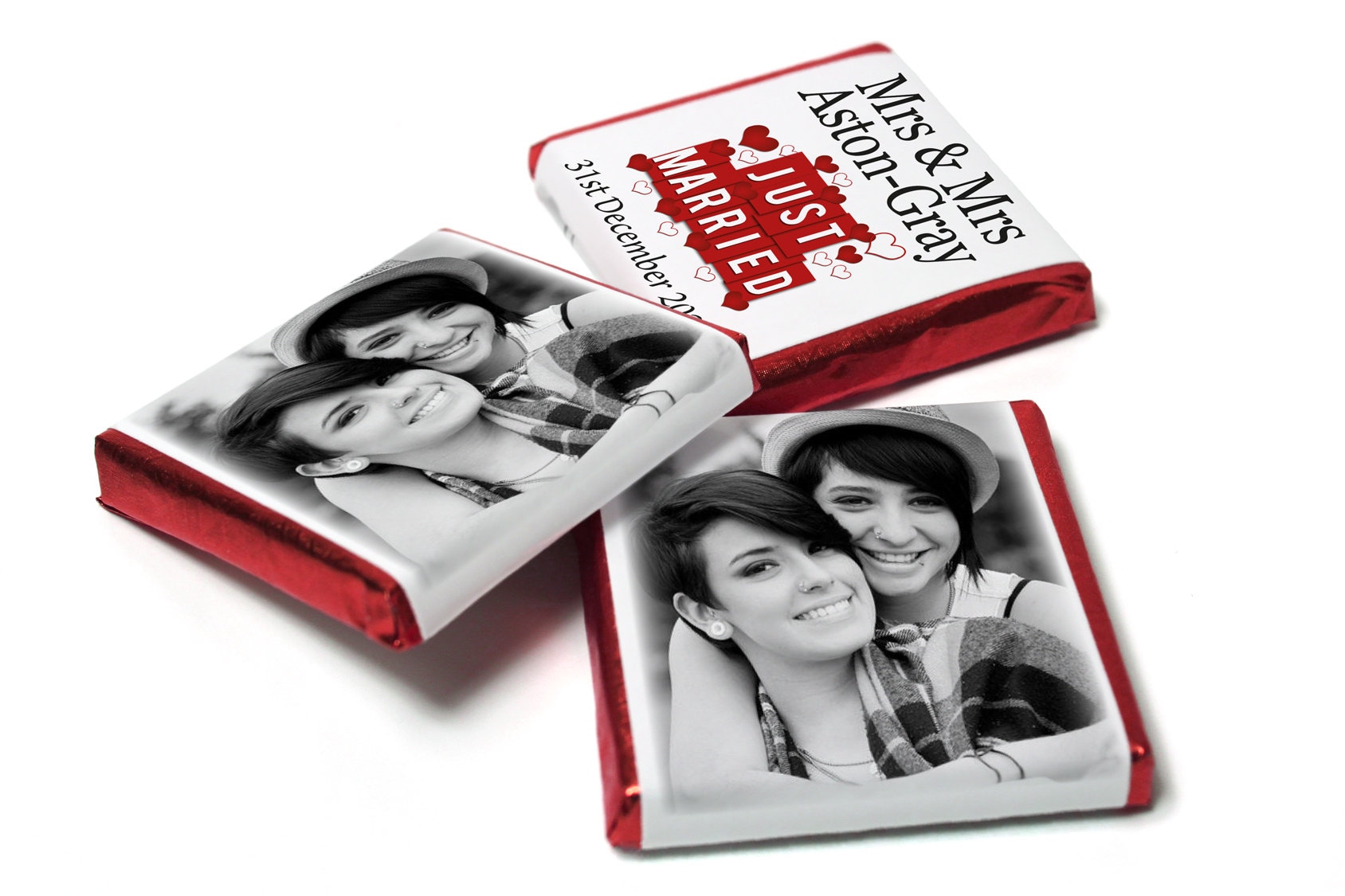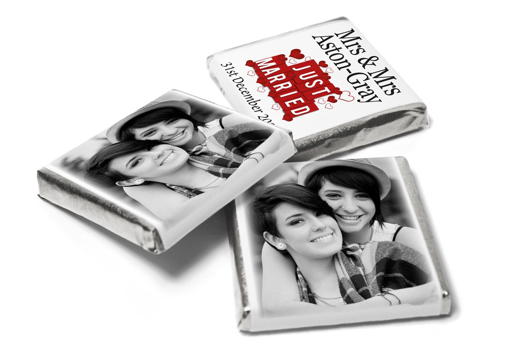 Wedding Chocolates - Personalised Wedding Favours - Neapolitan Chocolates - Mrs & Mrs - With Image - V1