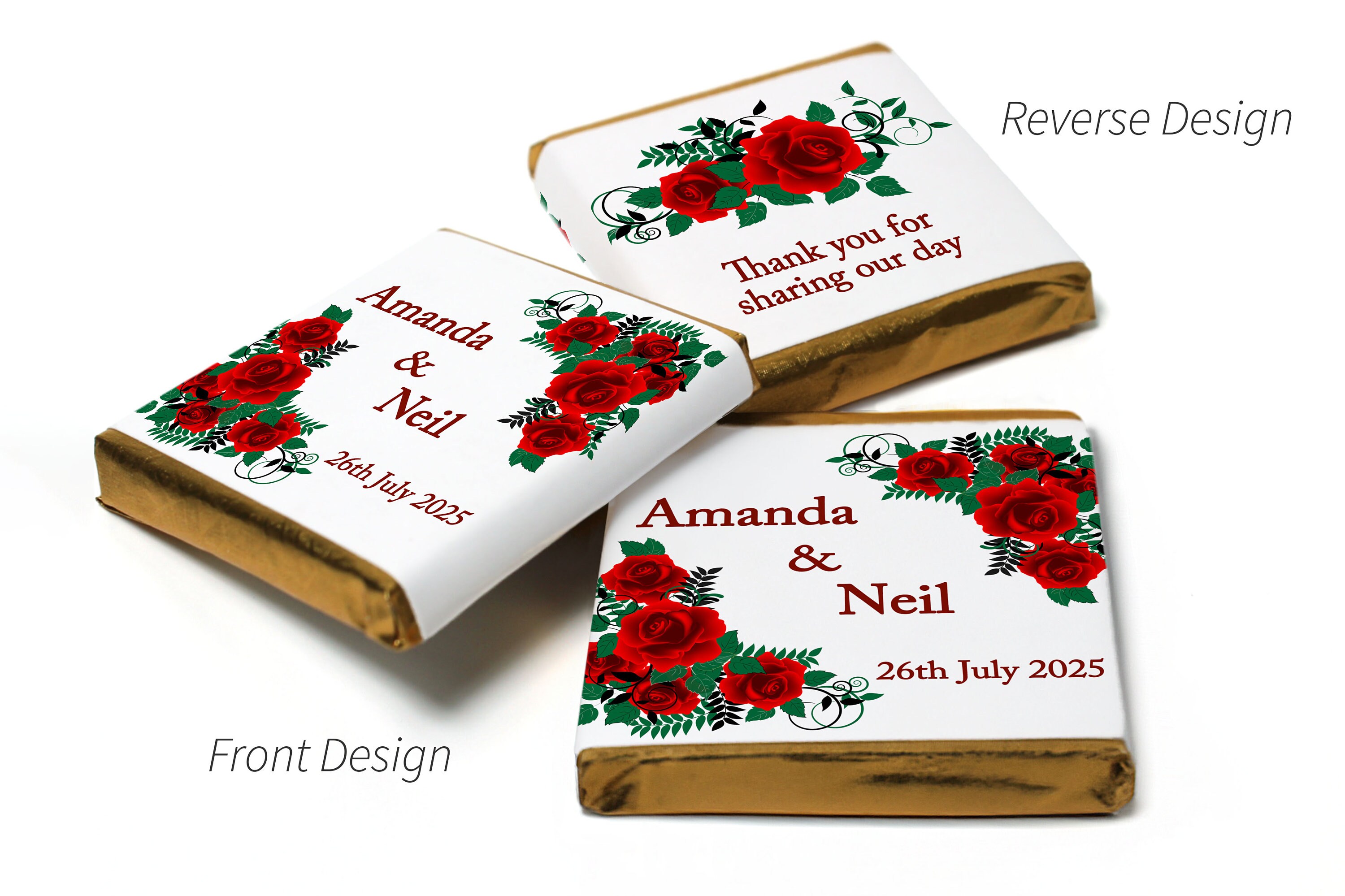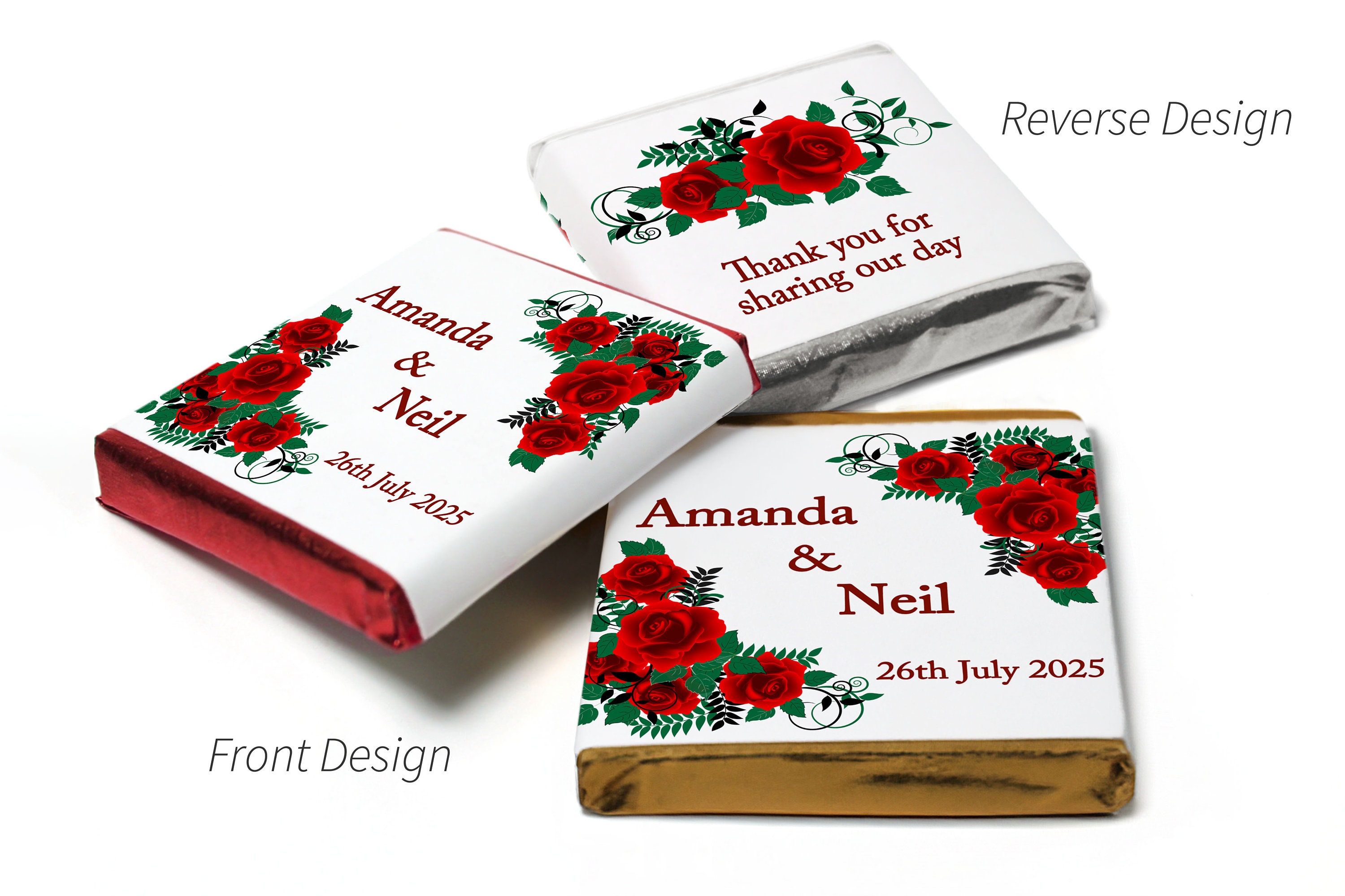 Floral Wedding Chocolates - Personalised Wedding Favours - Neapolitan Chocolates_- Rose V24