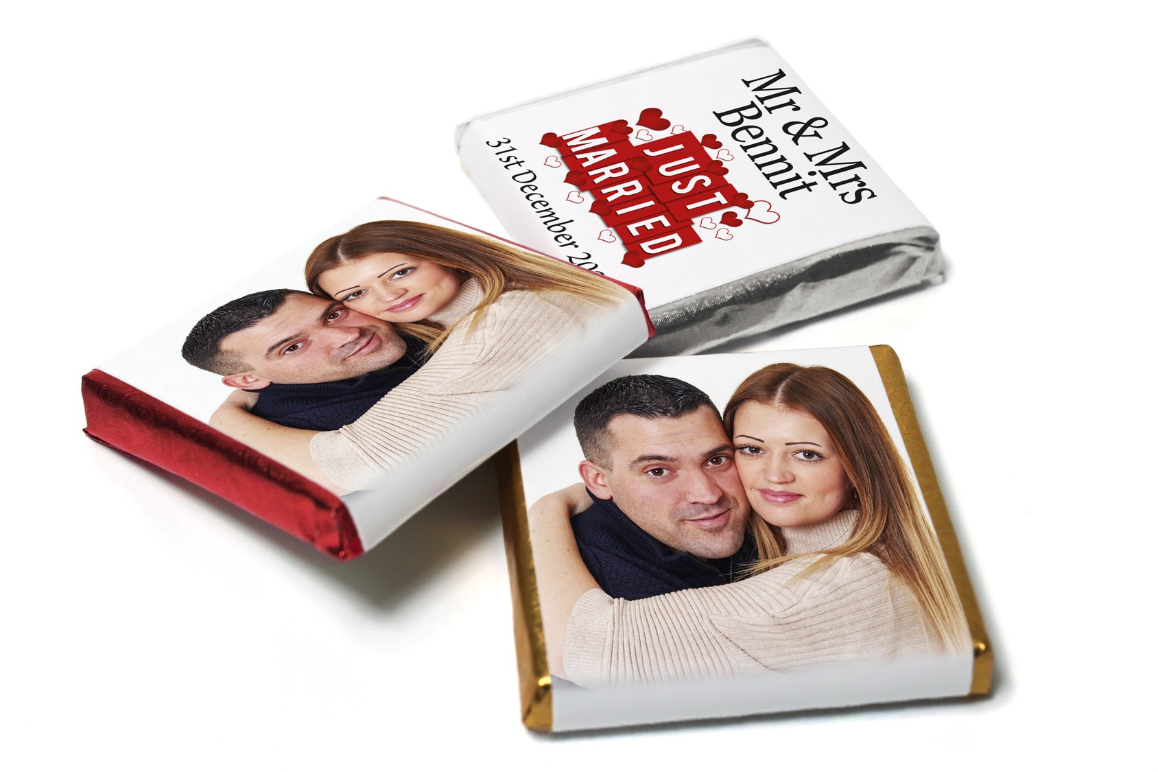 Wedding Chocolates - Personalised Wedding Favours - Neapolitan Chocolates -Mr & Mrs Image - V1