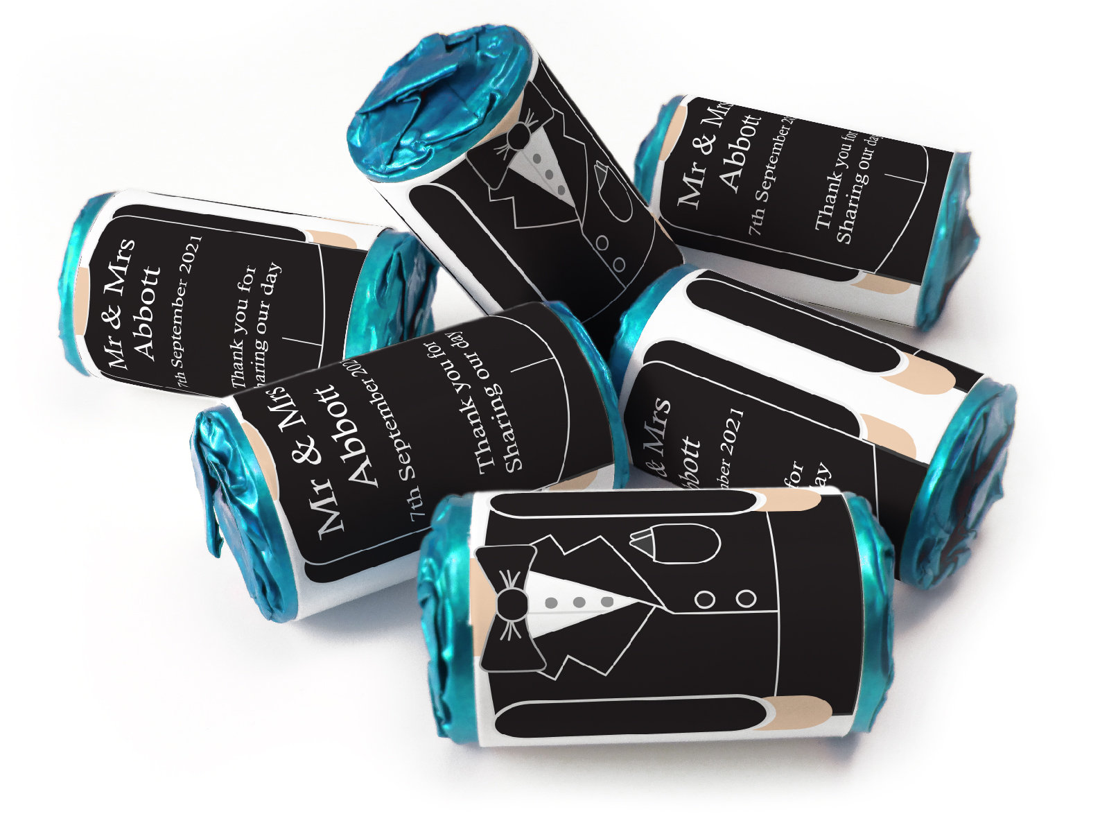 Wedding Sweets - Personalised Wedding Favours - Love Heart Sweets, Groom, Foil Choices - V8