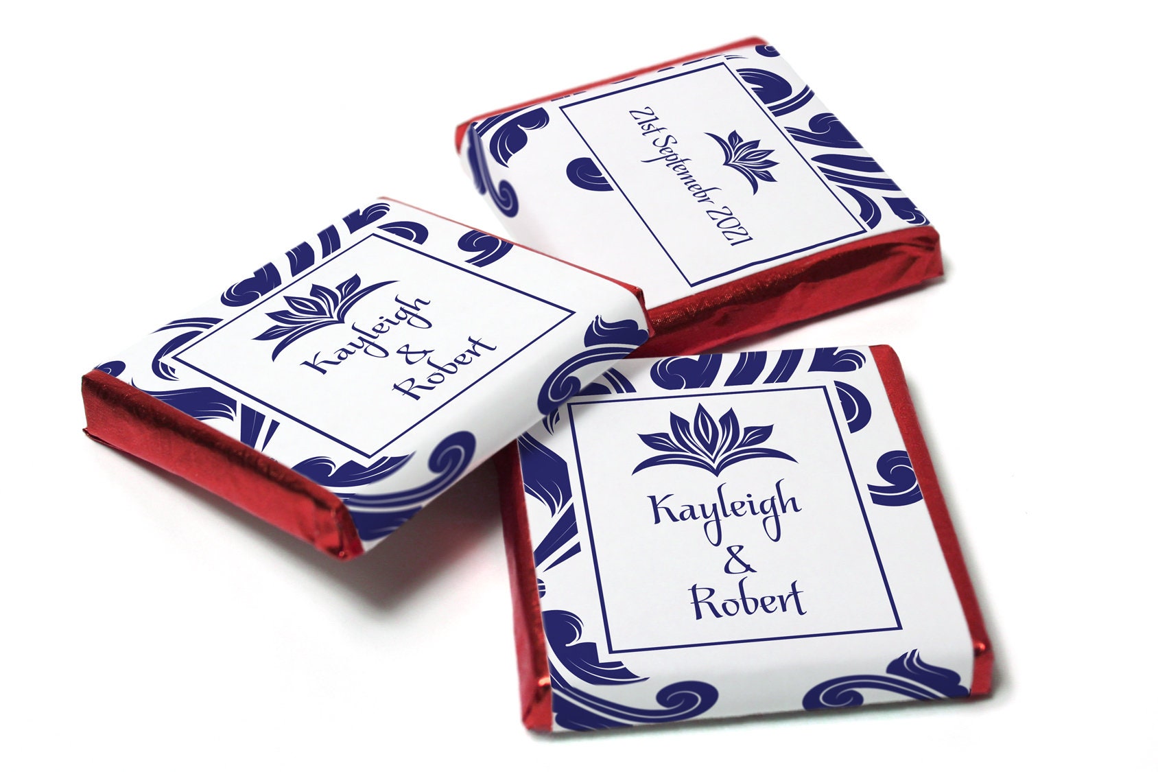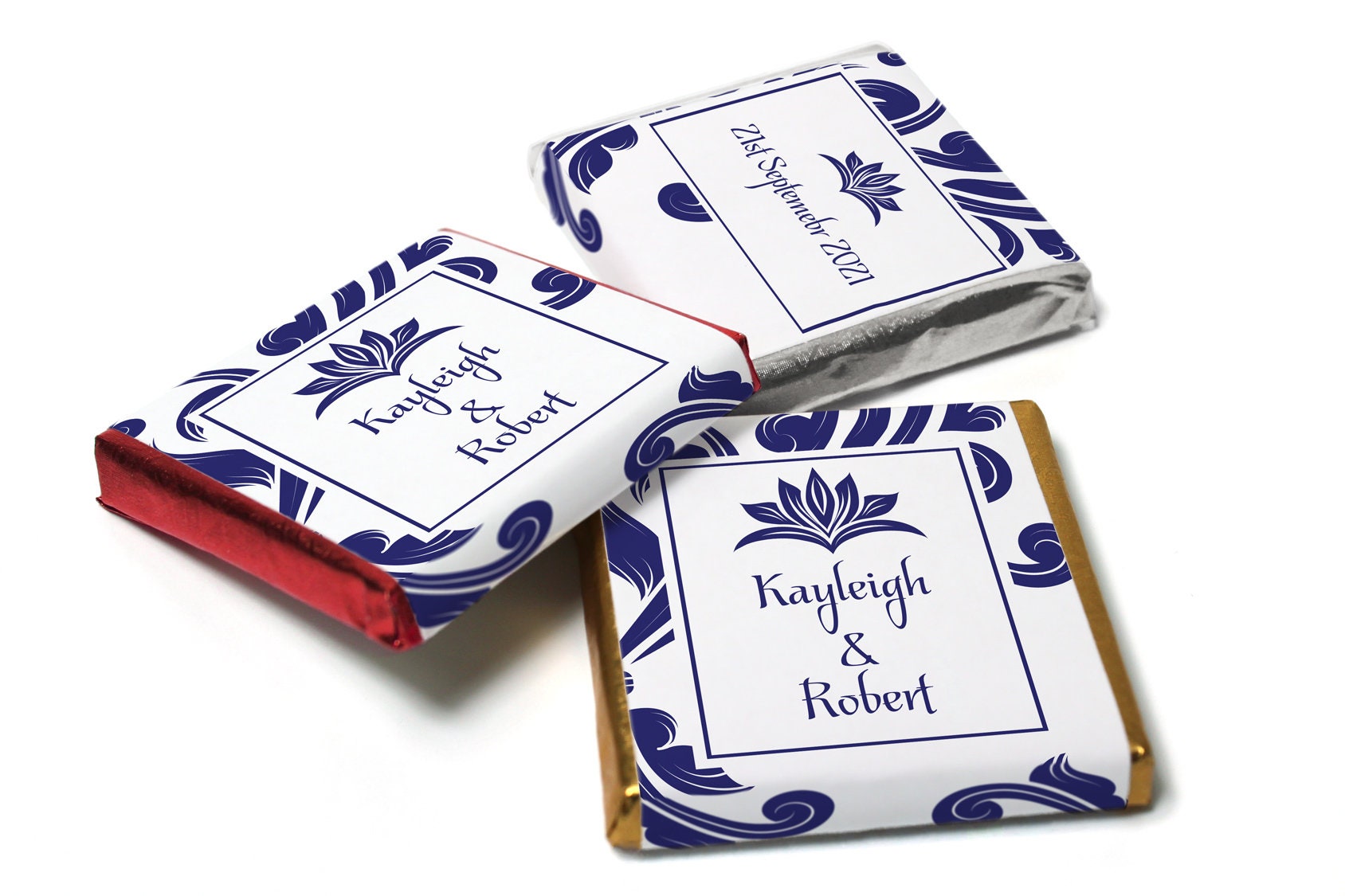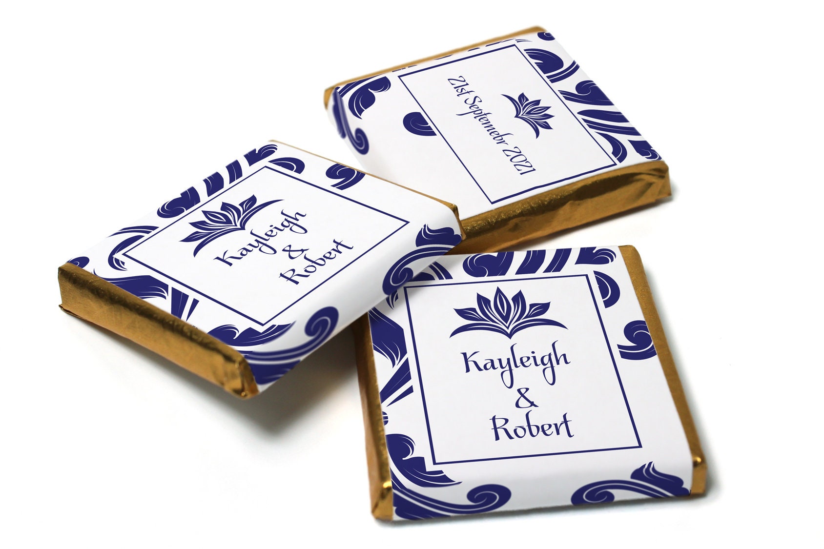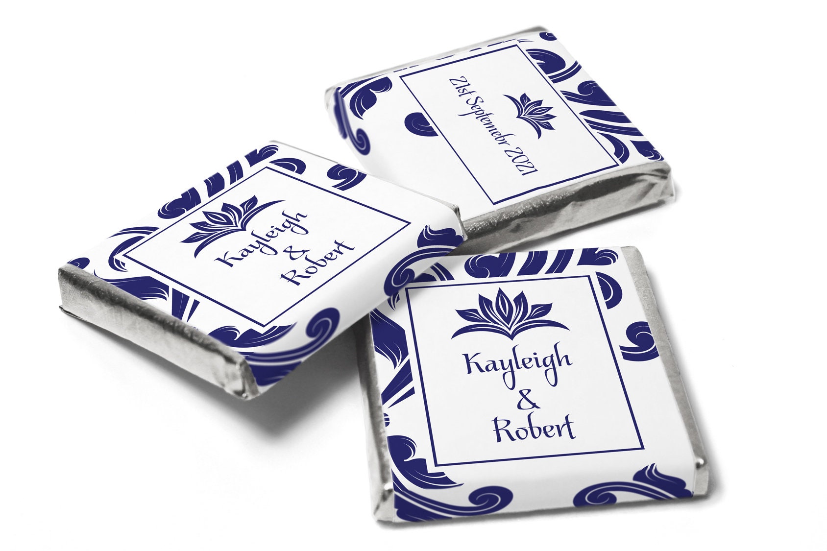 Floral Wedding Chocolates - Personalised Wedding Favours - Neapolitan Chocolates - Blue Swirl V11