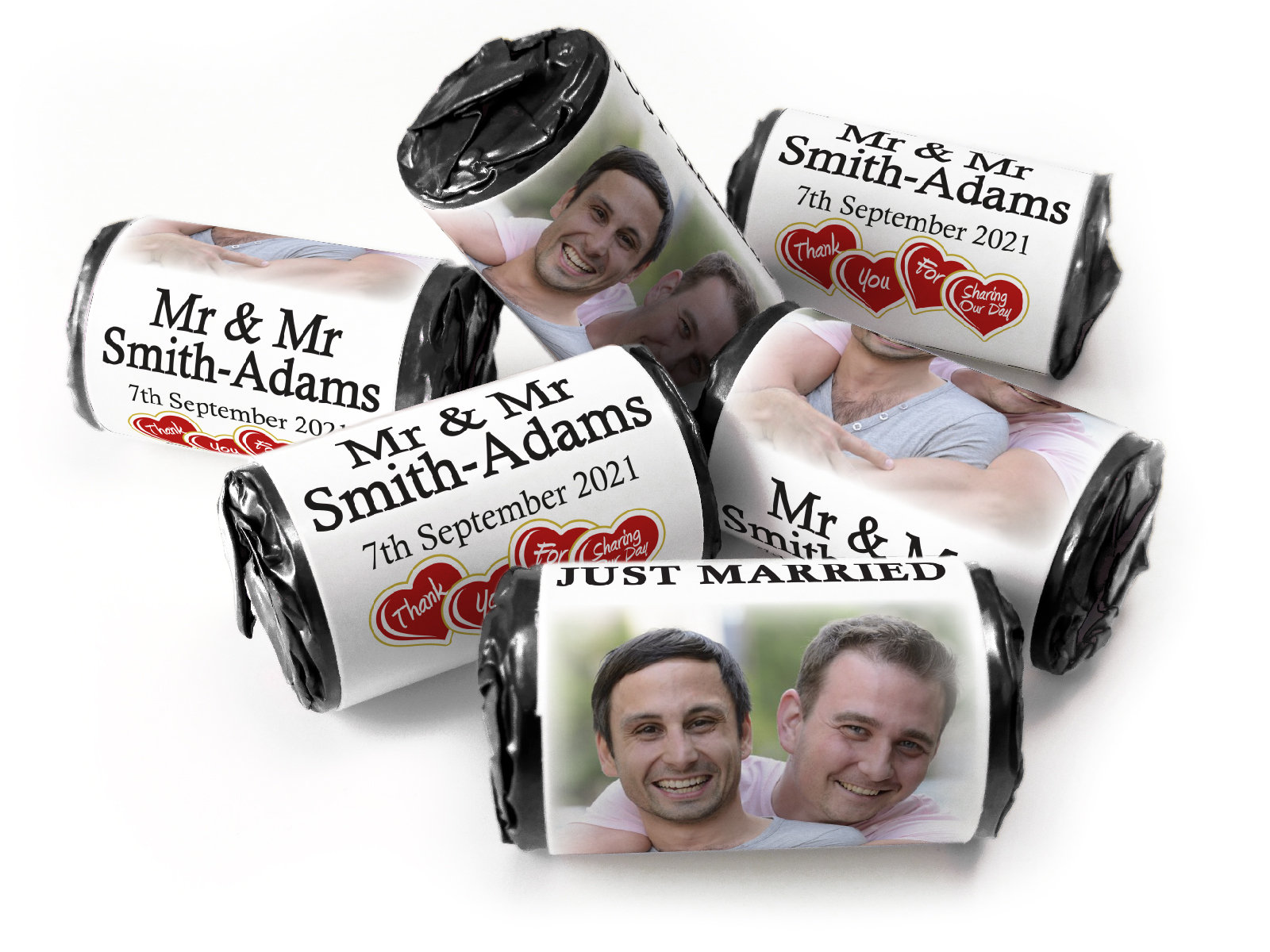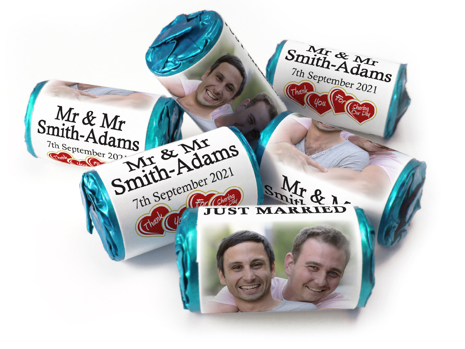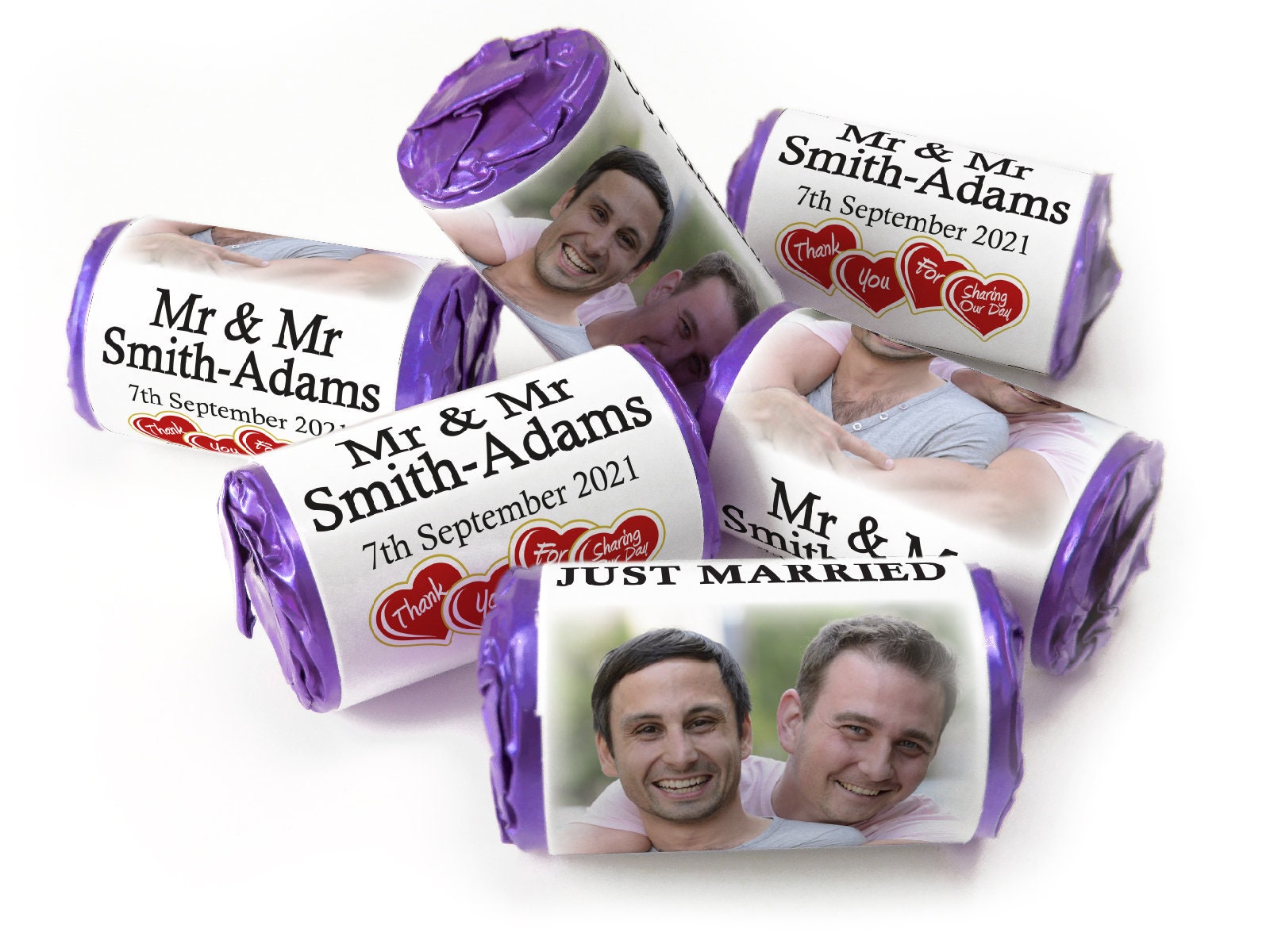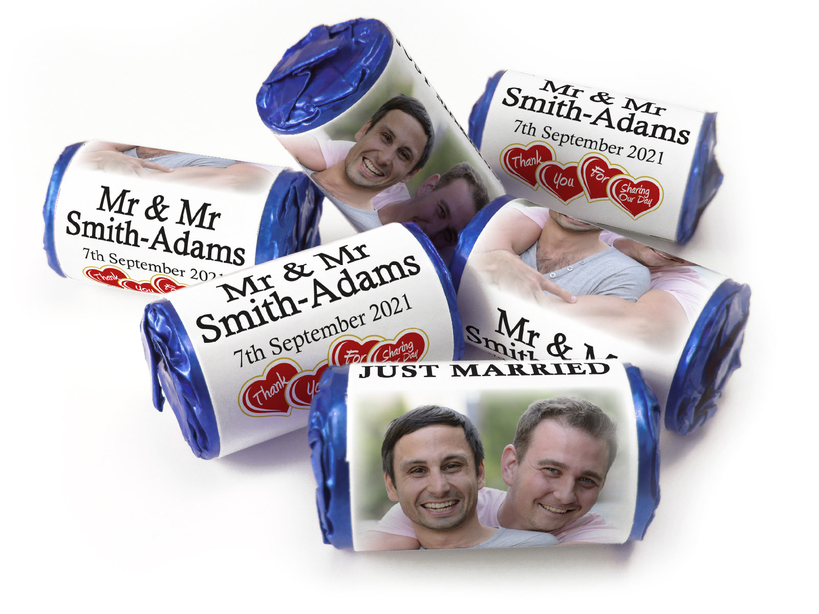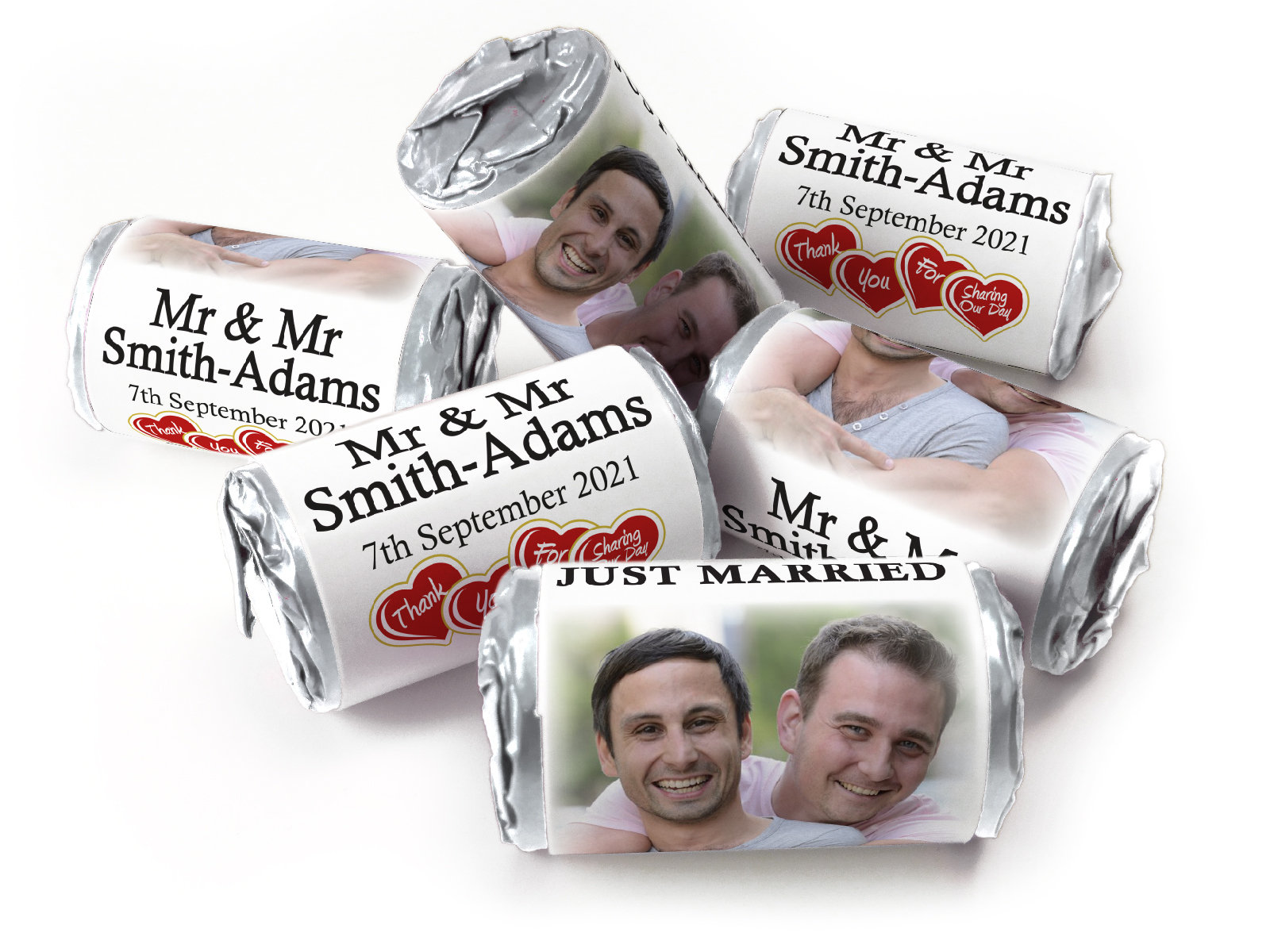 Wedding Sweets - Personalised Wedding Favours - Love Heart Sweets with Inner Foil choices, Mr & Mr - V3