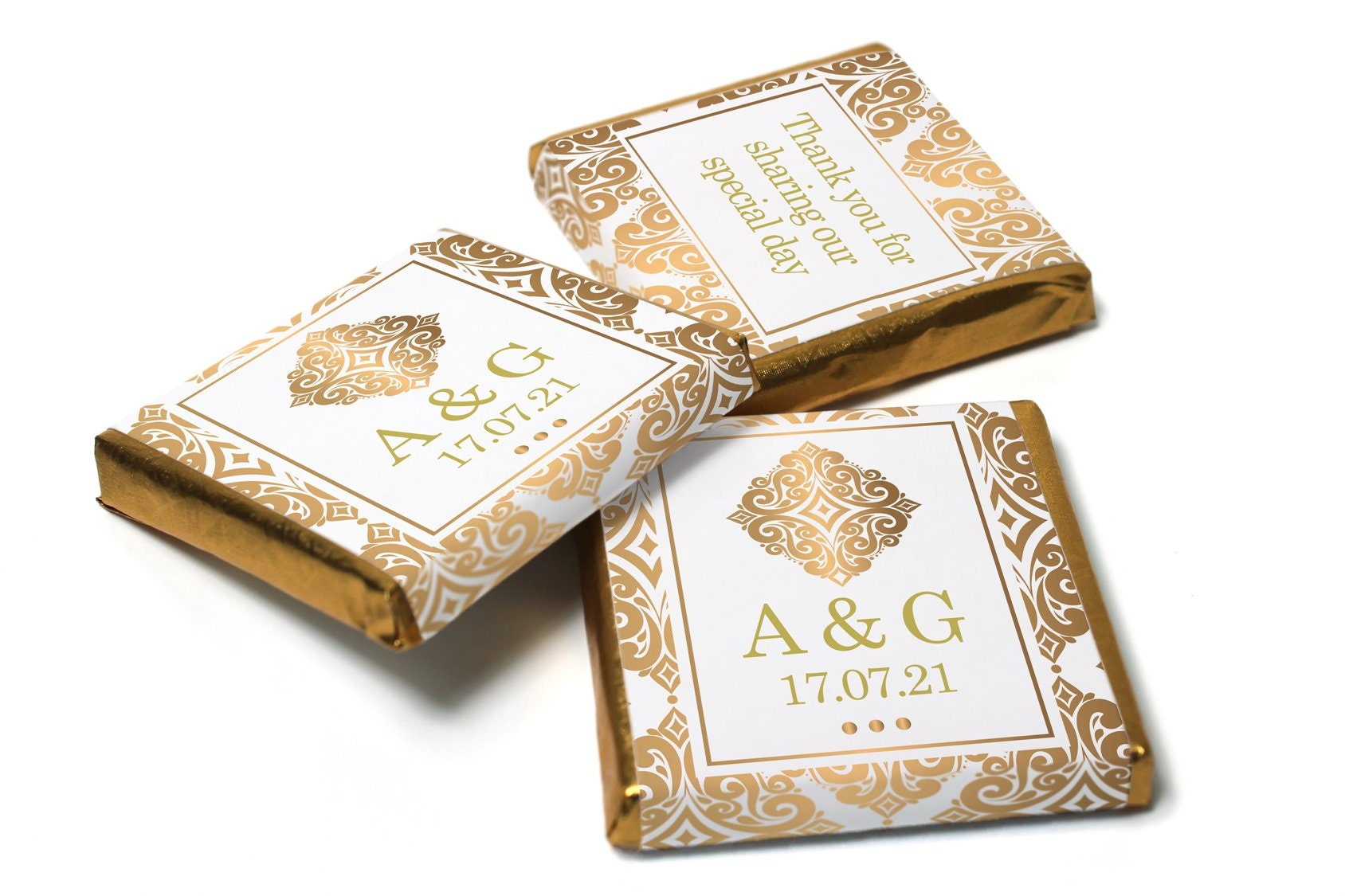 Wedding / Mehndi Chocolates - Personalised Wedding Favours - Neapolitan Chocolates -Gold Pattern - V13