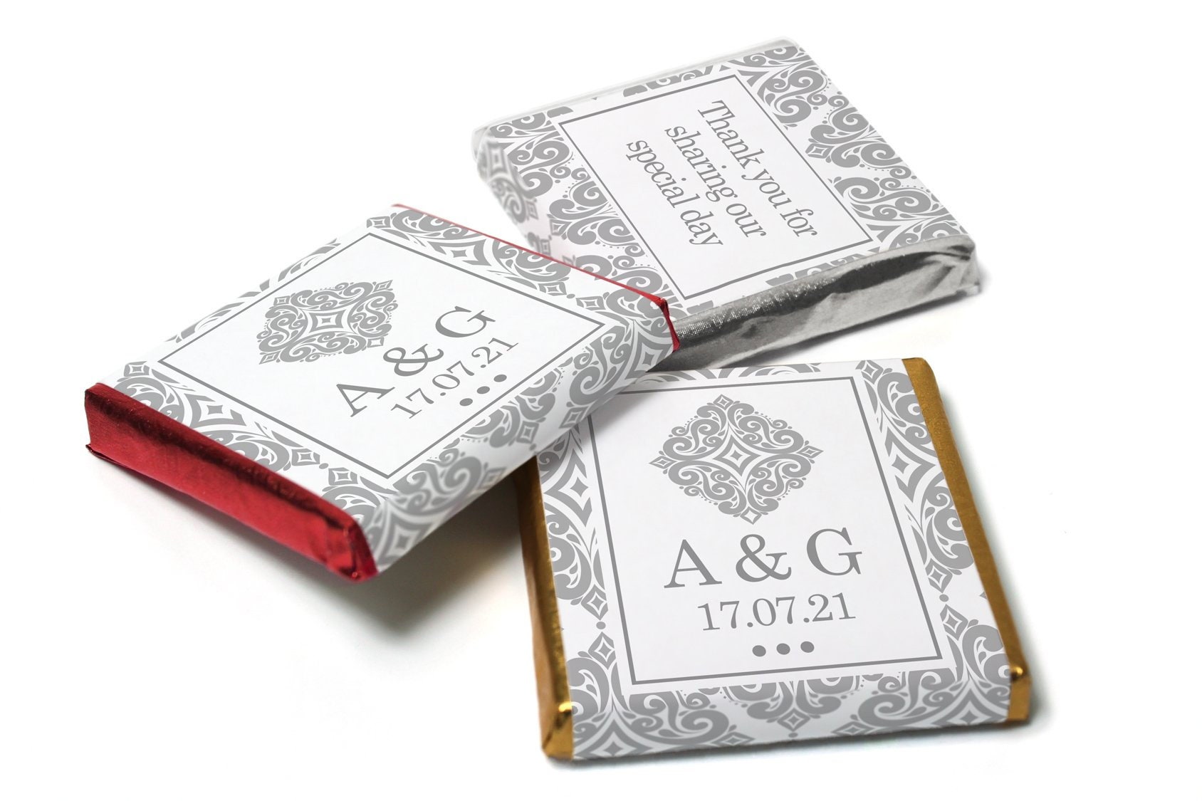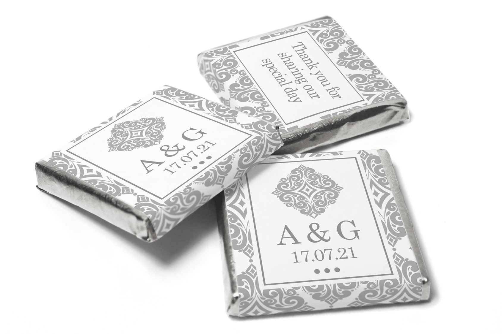 Wedding / Mehndi Chocolates - Personalised Wedding Favours - Neapolitan Chocolates - Silver Pattern - V13