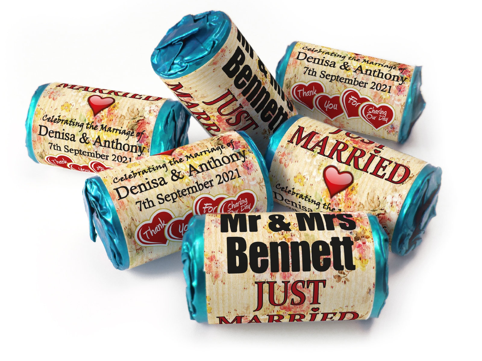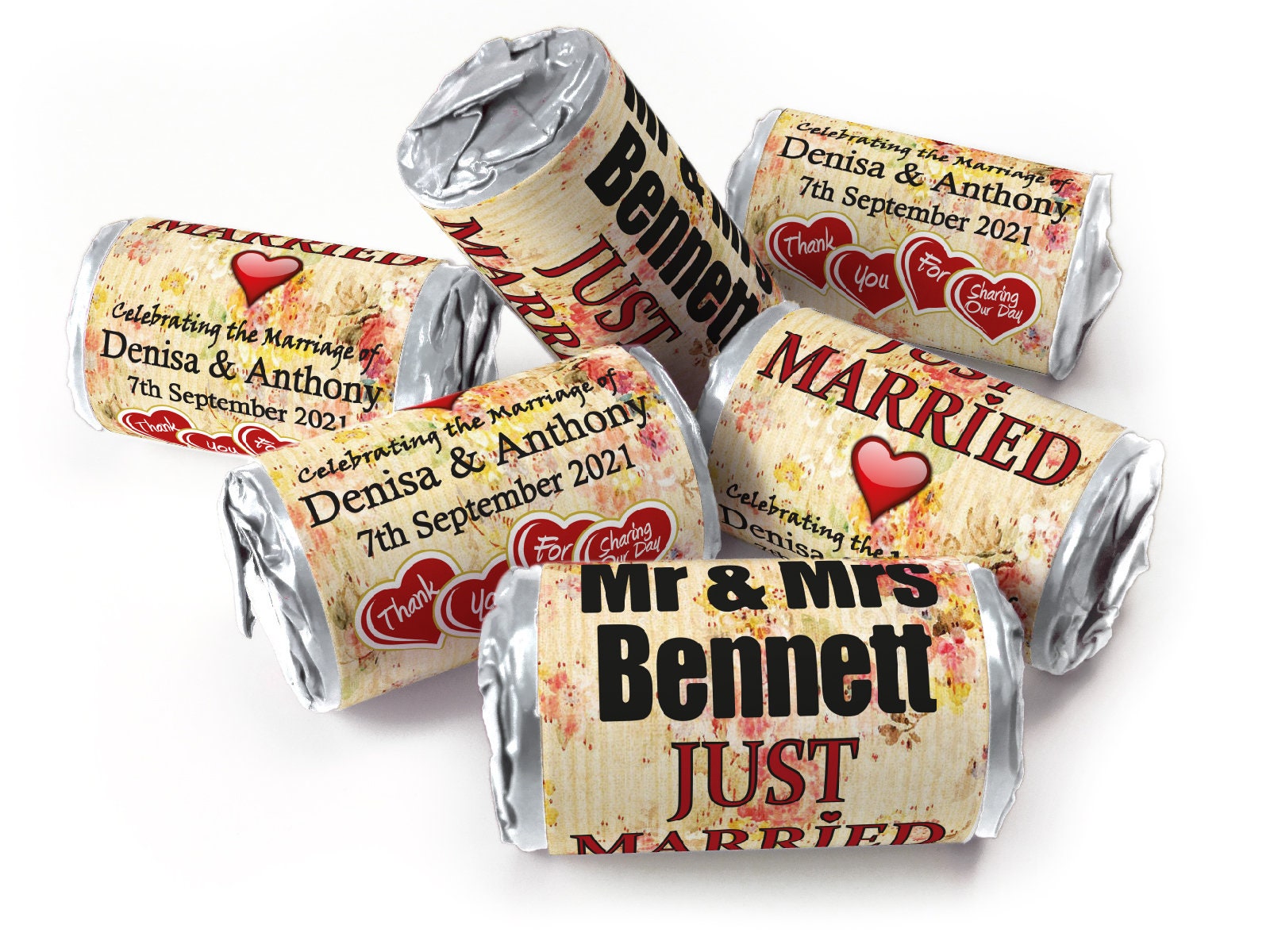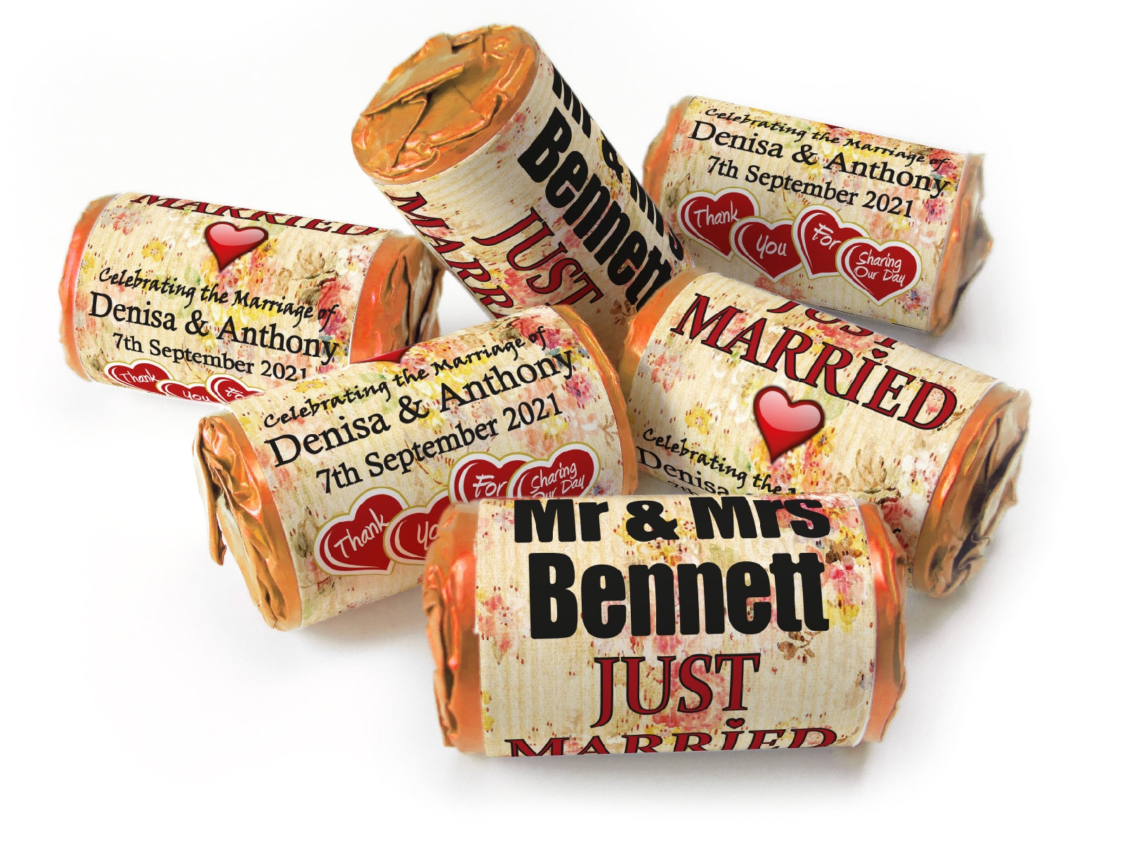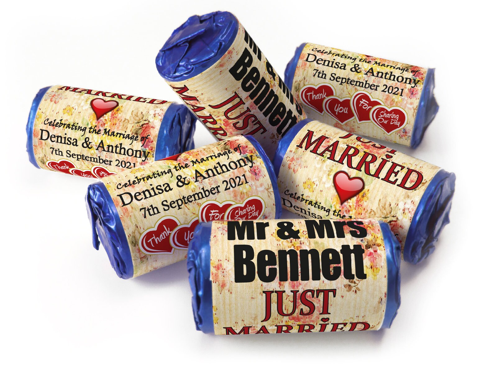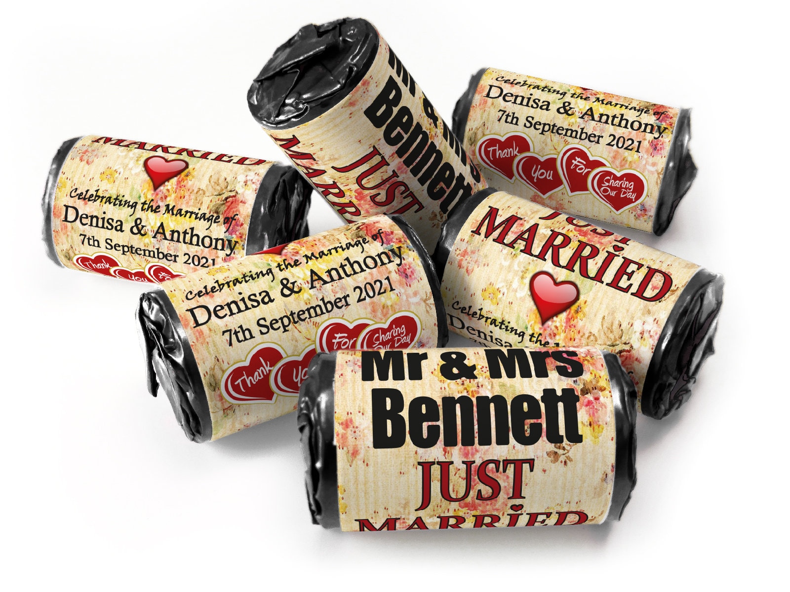Wedding Sweets - Personalised Wedding Favours - Love Heart Sweets with Inner Foil choices, Vintage, Foil Choices - V2