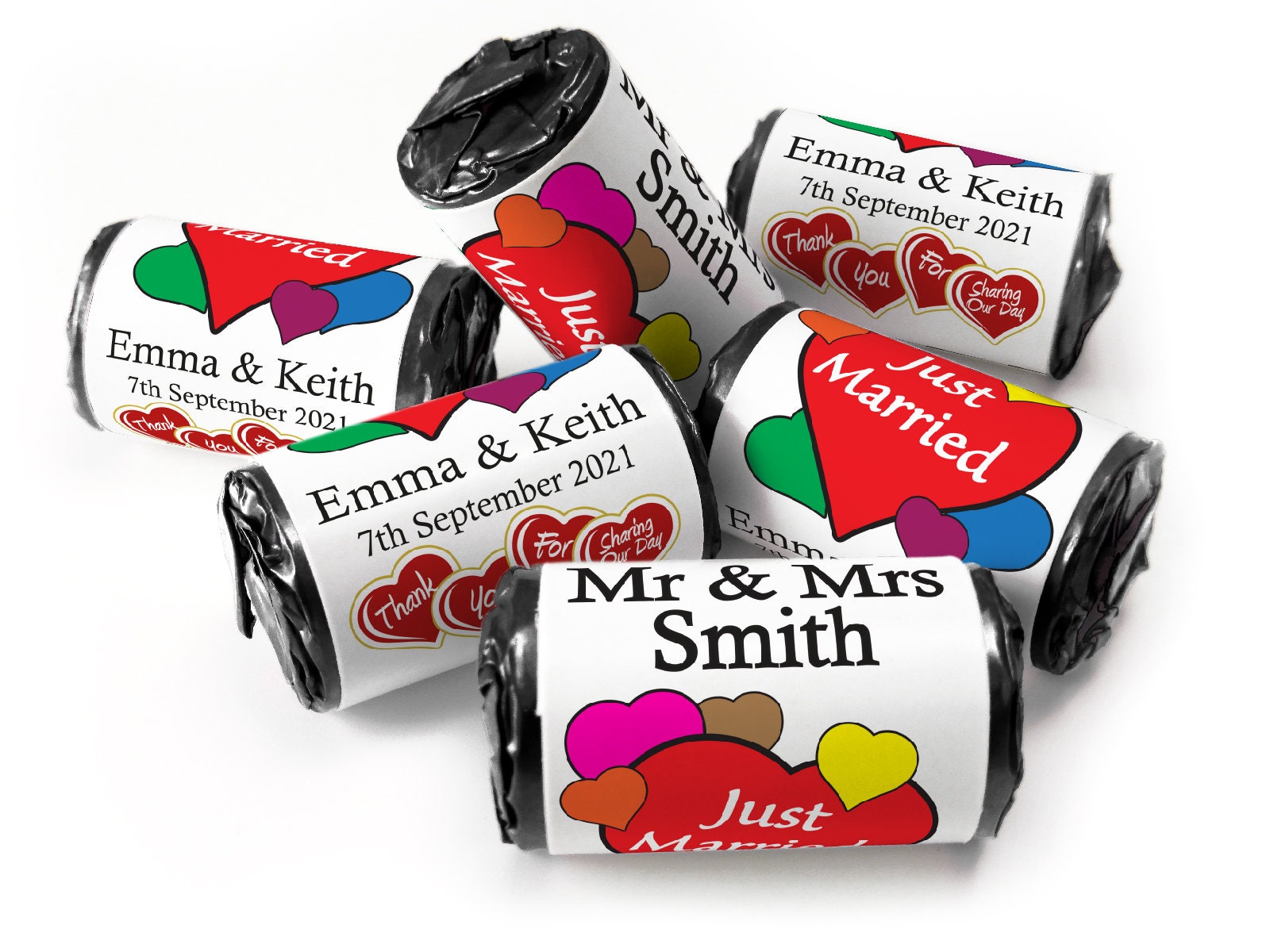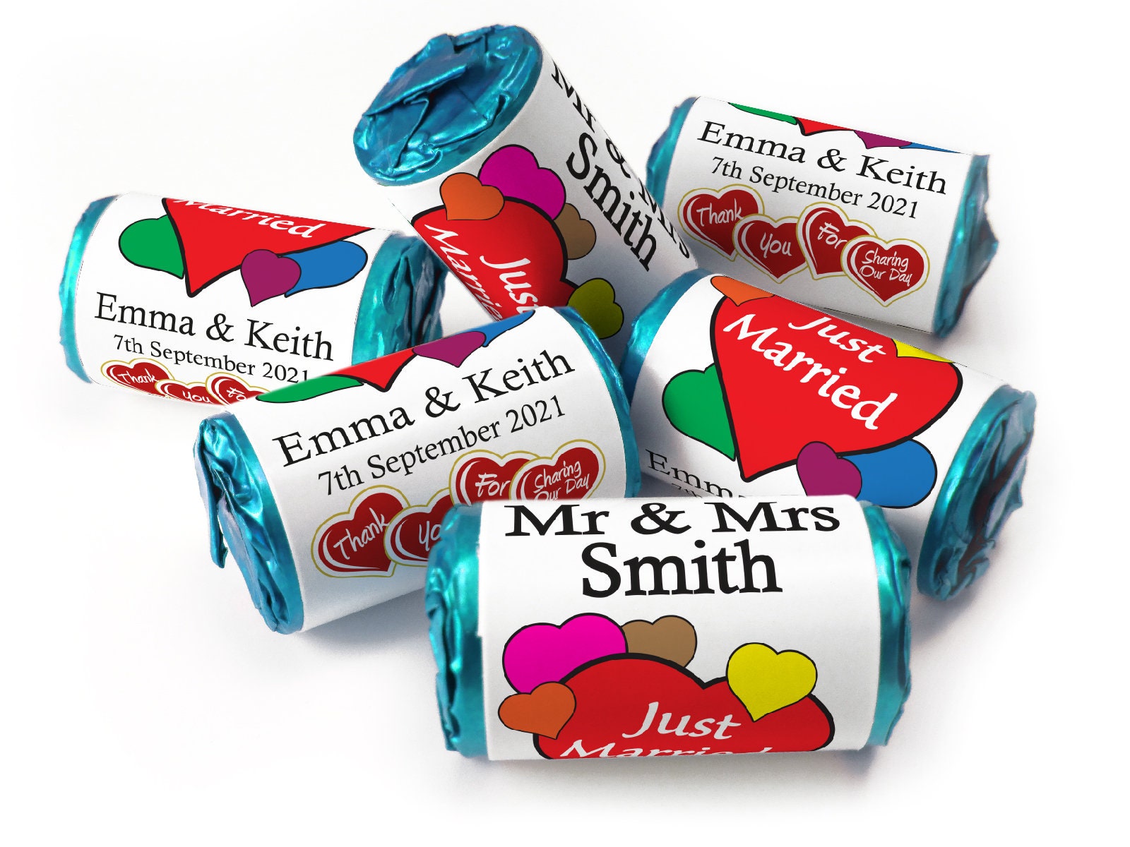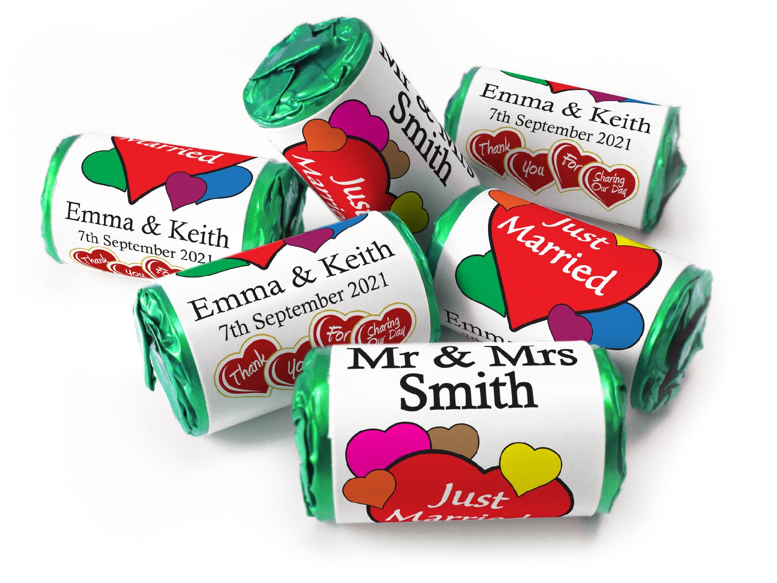 Wedding Sweets - Personalised Wedding Favours - Love Heart Sweets with Inner Foil choices - V6